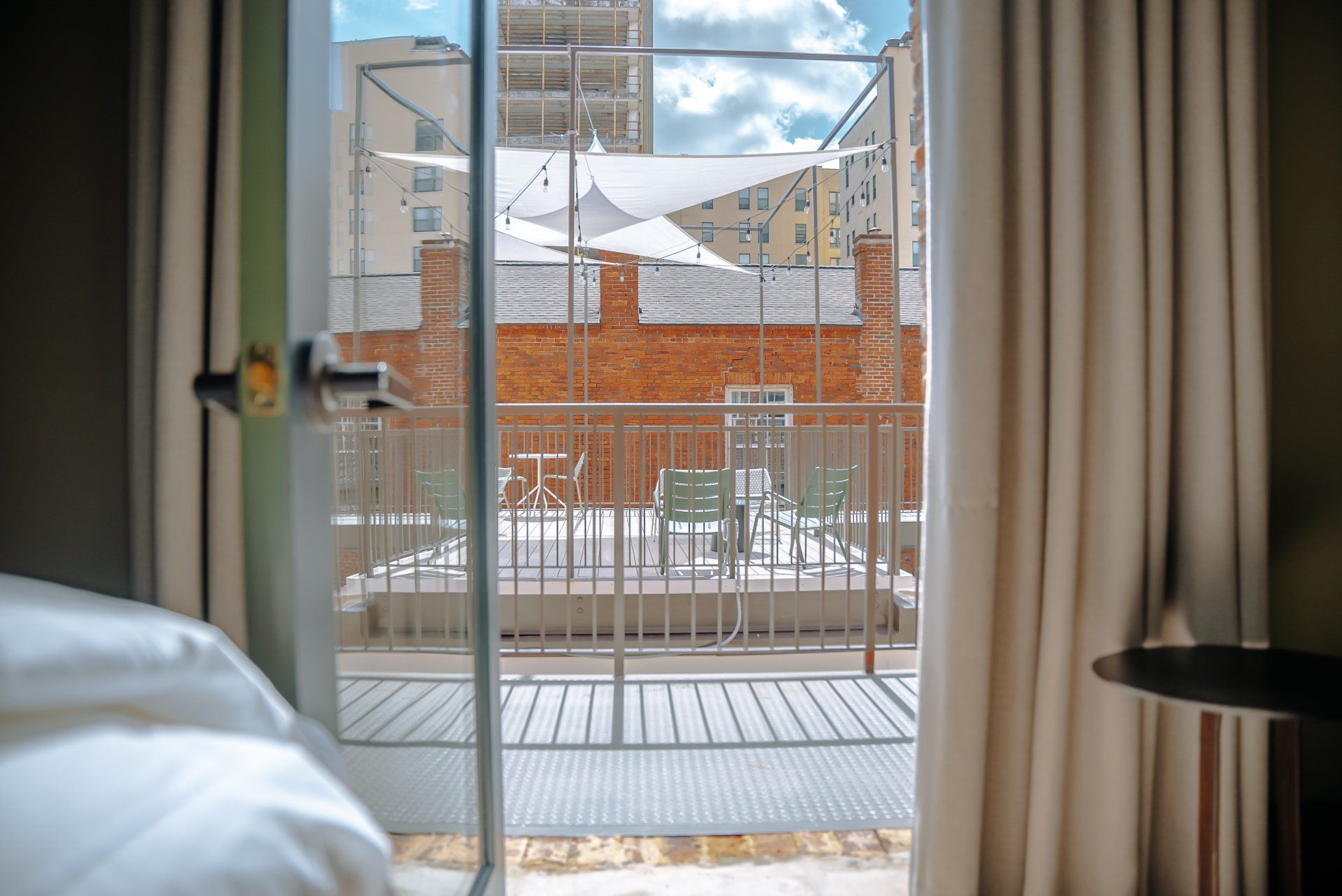 Room 8 opens onto a balcony adjacent to our bar's rooftop patio and the quaint, historic brick buildings on Mulberry Street Lane (an alley lined with five local restaurants). An upholstered king-sized bed with luxurious Matouk sheets, dormant fireplace, reading chair, writing desk, a selection of Southern literature, and a pristine designer-tiled bathroom await you.